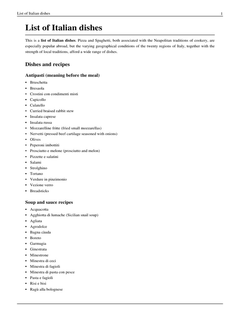 List Of Italian Dishes Wikipedia. This is a list of italian dishes and foods. Italian cuisine has developed through centuries of social and political changes, with roots as far back as the 4th century bc. My name is alessia and i currently live in italy. I lived some years in america where i deepened my knowledge of english and american dialects. List of the best italian food, as ranked by italians, professional chefs, and food lovers. Italy is the birth place of some of the most amazing foods and. Food (il cibo) is one of the most meaningful aspects of italian culture. Whether you're a fan of americanized italian food from olive garden or authentic home cooked meals, the italian foods on this list are among the best. Traditional italian food is arguably the most popular and well known cuisine in europe and indeed the entire world. This dish is very popular in many regions of italy. Let's start with an overview on italian food. Listing italian cuisine (photo of it is presented in the article), it is impossible to lose sight of the ravioli. Hi, welcome to my profile! List of food in italian: It is a traditional central italian dish.